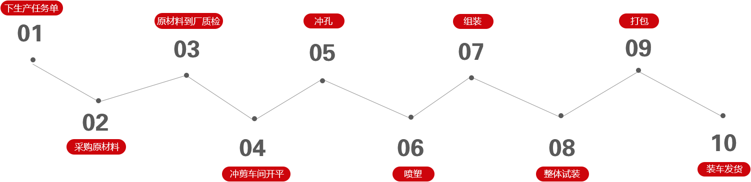 沖剪車間、組裝車間、立柱車間、噴塑車間、試裝、裝車總共25+全程質檢系統