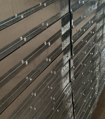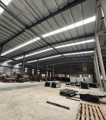 超長噴塑流水線,H型鋼熱鍍鋅工藝,面板自動下料、沖孔壓彎、表面靜電噴涂、H型鋼自動埋弧焊接四條自動化生產線。