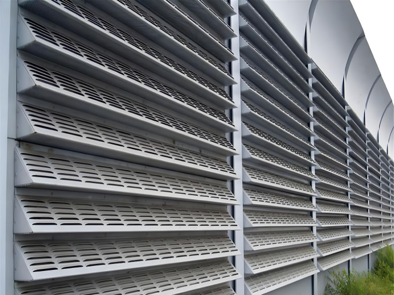三角錐聲屏障降噪原理:三角錐聲屏障主要是面板做成三角錐的形狀,也可以叫做尖劈式聲屏障,面板的沖孔樣式有兩種,底部是微孔,尖劈部分是百葉孔,這樣可以使反射的聲波相互碰撞干擾而逐步衰減。